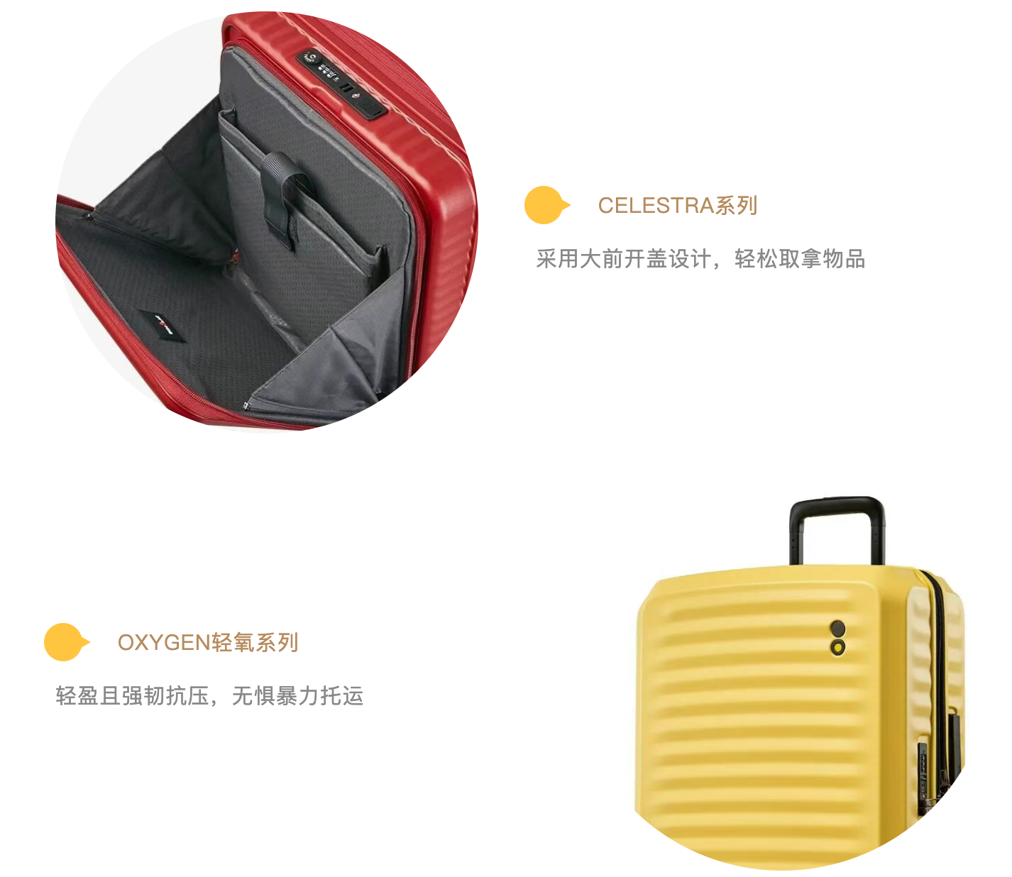 爱可乐始终坚持在箱包的时尚外观与实用功能之间寻找平衡,并持续通过创新为消费者带来更好的体验:在保障产品耐用度的前提下,CELESTRA系列行李箱创新性采用大前开盖结构,突破了常规对开结构对物品大小的限制;而OXYGEN轻氧系列行李箱则从设计源头入手,降低PC箱壳重量的同时提升箱体抗冲击性能,为旅者带来更轻量的旅程体验。