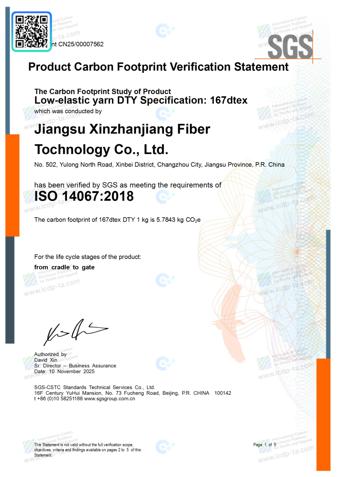 本次对核心产品“低弹丝 DTY”进行碳足迹核算,不仅是欣战江对自身绿色数据底座的完善,更是其推动纺织产业链碳数据迈向“透明流通”的关键实践,打破了行业上下游的碳数据壁垒,让减排价值变得可量化、可追溯,赋能上游供应链伙伴与下游品牌实现ESG合规与供应链绿色升级。