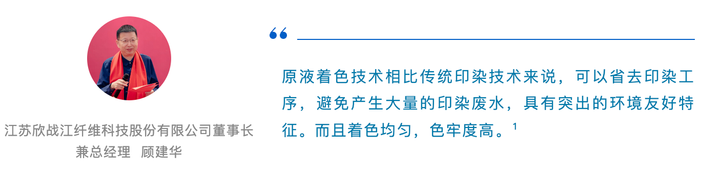 技术上,欣战江立足“原液着色”(Dope Dyeing)根本,从产业链材料源头确保低碳属性。不同于传统纺织业“先纺丝、后染色”的高耗水、高耗能模式,原液着色技术将色母粒直接与熔体混合纺丝。