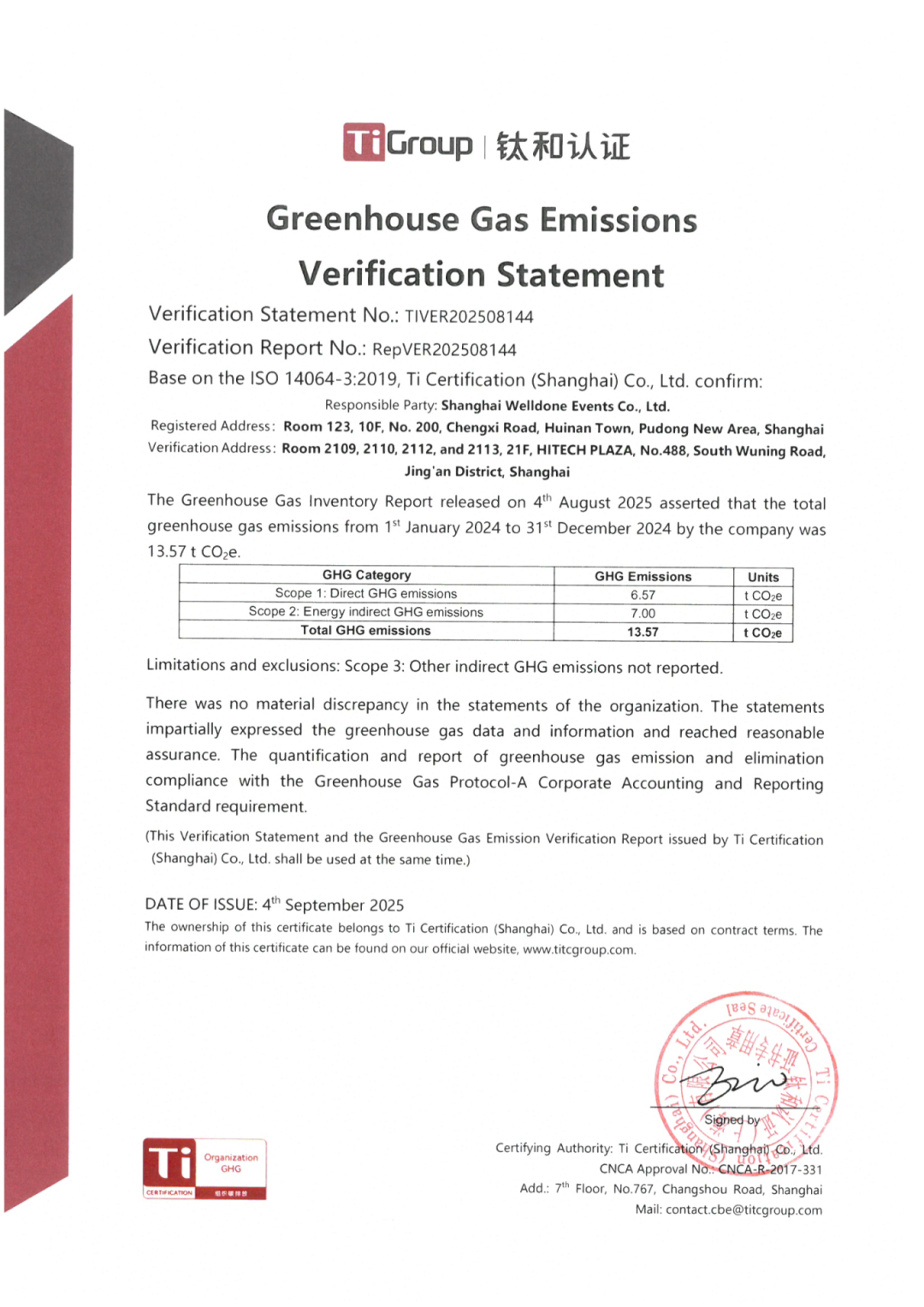 Recently, AstraZeneca’s conference service supplier — Shanghai Weidun Conference Service Co., Ltd. — completed its 2024 corporate greenhouse gas (GHG) inventory and obtained a certificate issued by the authoritative third-party certification body Titan Certification. The GHG inventory followed the GHG Protocol: Corporate Accounting and Reporting Standard, covering Scope 1 and Scope 2 emissions.