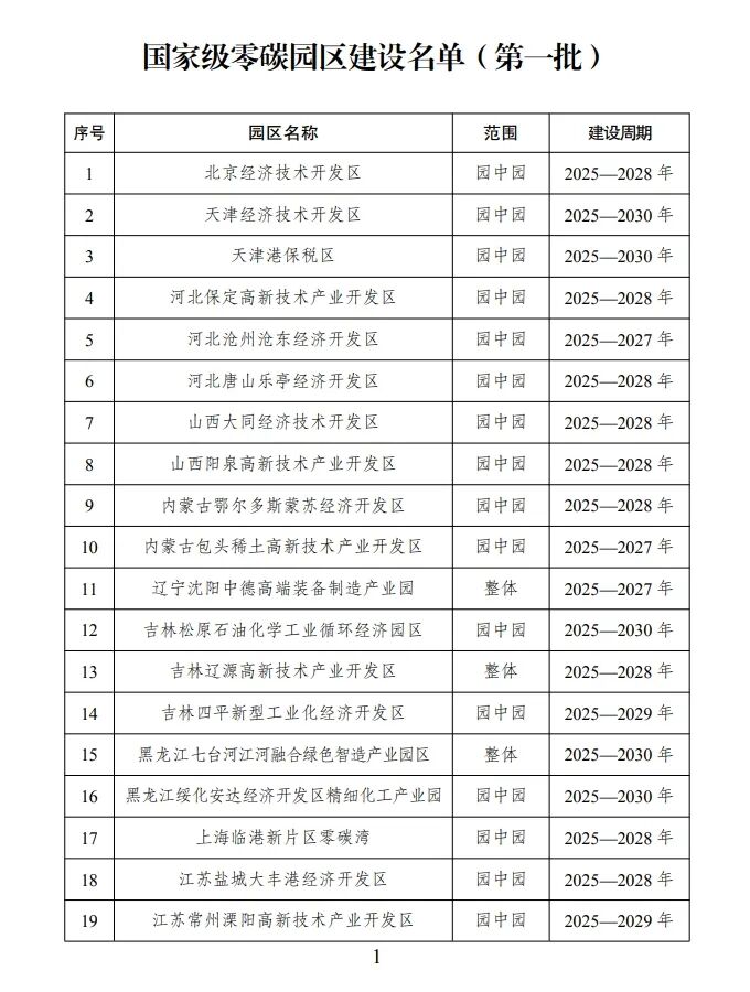 1.国家发改委等三部门:发布首批52个国家级零碳园区建设名单