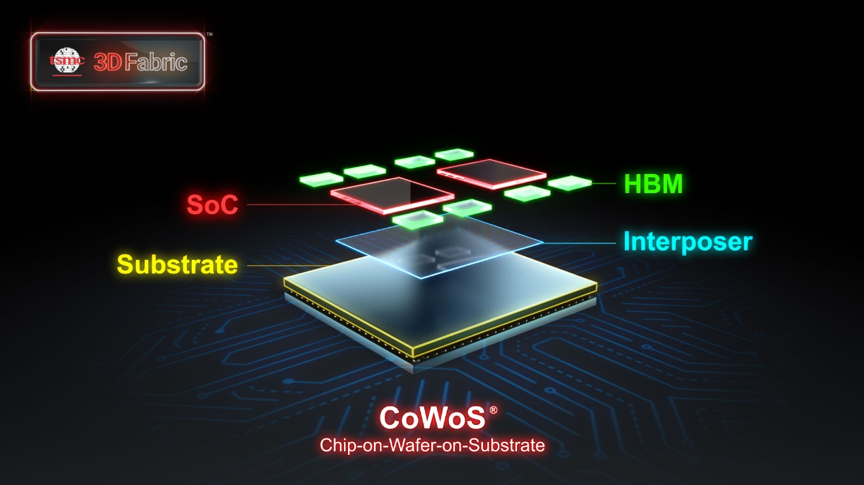 台积电CoWoS封装技术可以结合多芯片、HBM 和中介层,形成多层结构的微芯片系统