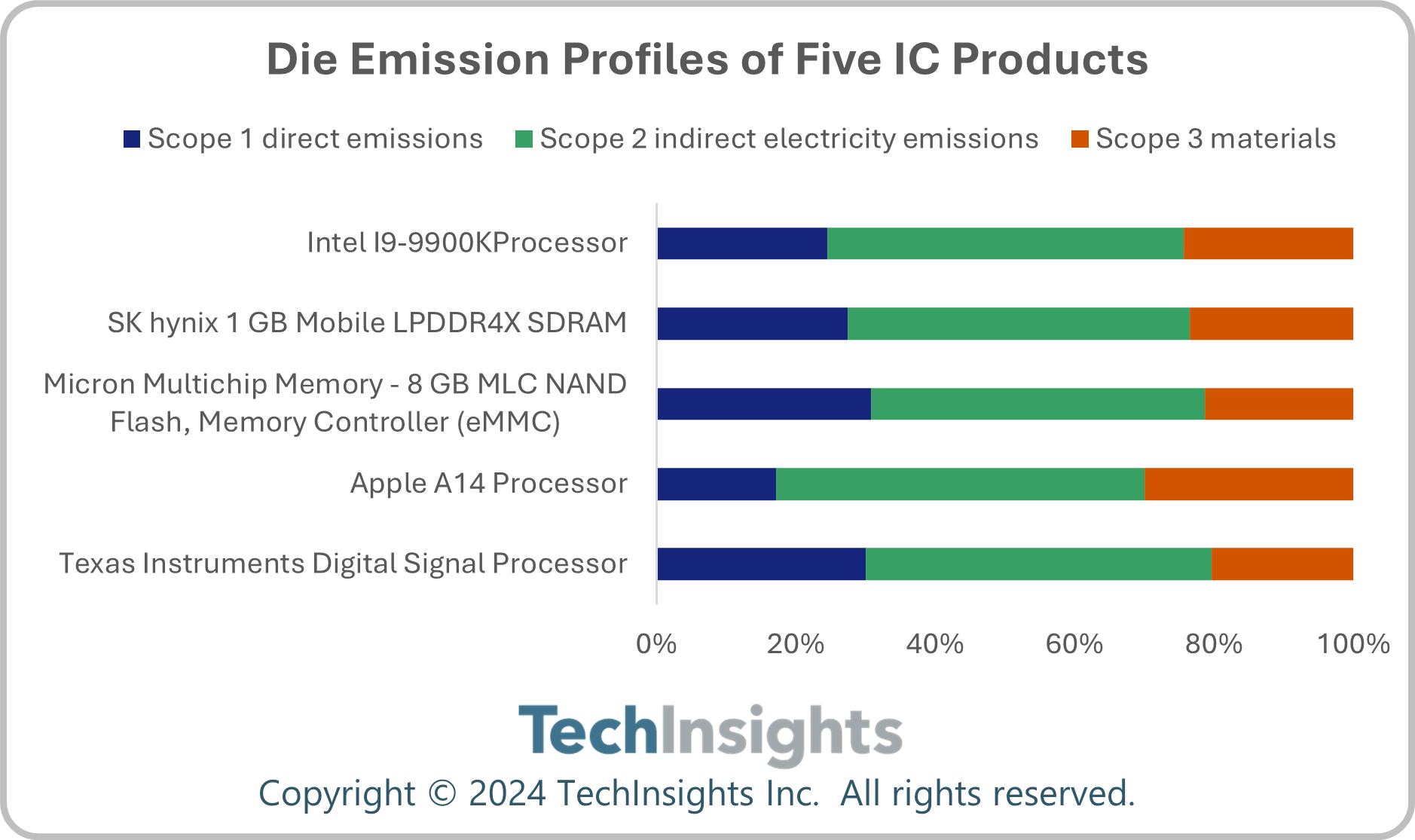 2024年12月Packaging+ Carbon Module五款IC产品的芯片排放概况,图源:TechInsights