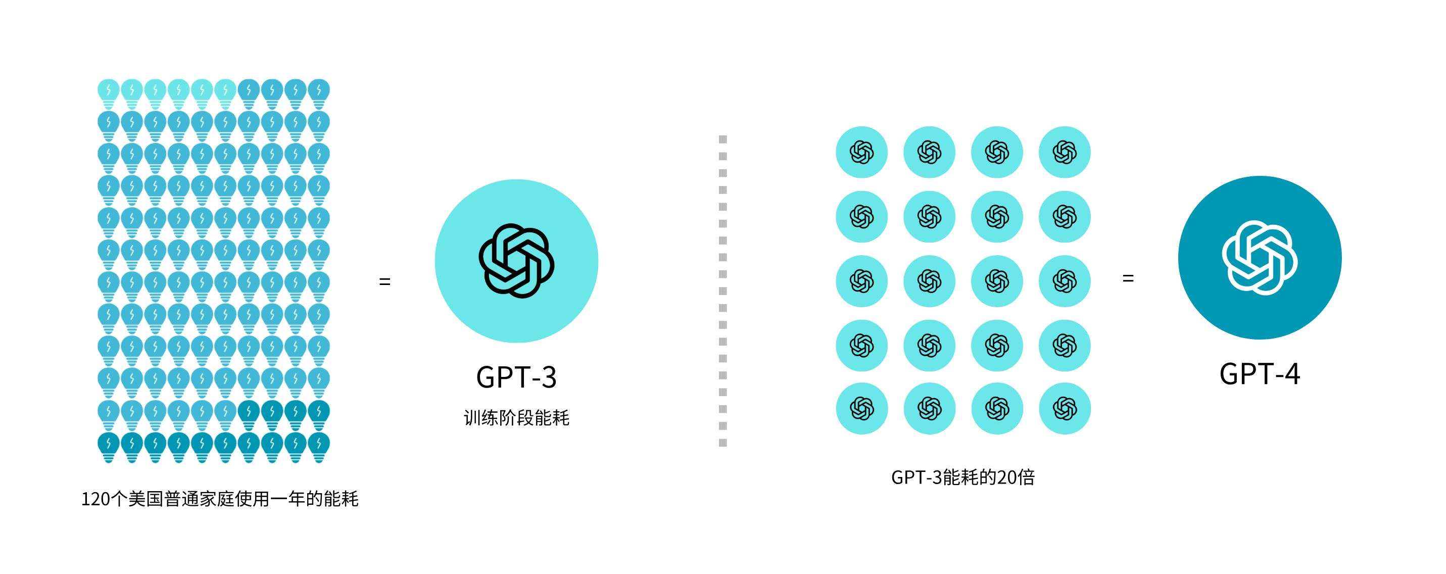 🔸庞大的运行能耗:生成式AI的训练集群耗能是传统计算工作负载的7-8倍。2021年的一篇研究估计,训练像OpenAI的GPT-3这样的模型就会消耗1287兆瓦时的电力(相当于约120个美国普通家庭使用一年),并产生约552吨二氧化碳⁷。GPT-3有1750亿多个参数,GPT-4约有1.8万亿个,其规模较GPT-3扩大约10倍的同时,其能耗却是GPT-3的20倍⁸。随着AI大模型更新迭代,能耗呈现出指数级别增长趋势。