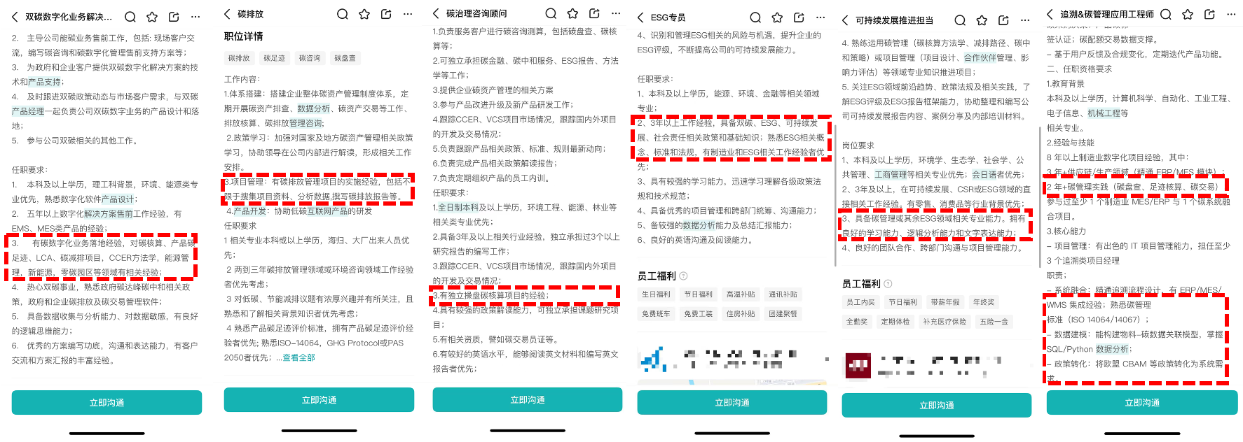 在某主流招聘平台上,“双碳”相关岗位不仅薪资普遍较高,其要求也精准地指向“绿色+N”复合能力,如“有独立操盘碳核算项目的经验”、“具备碳管理领域相关专业能力”、“能构建物料-碳数据关联模型”等。