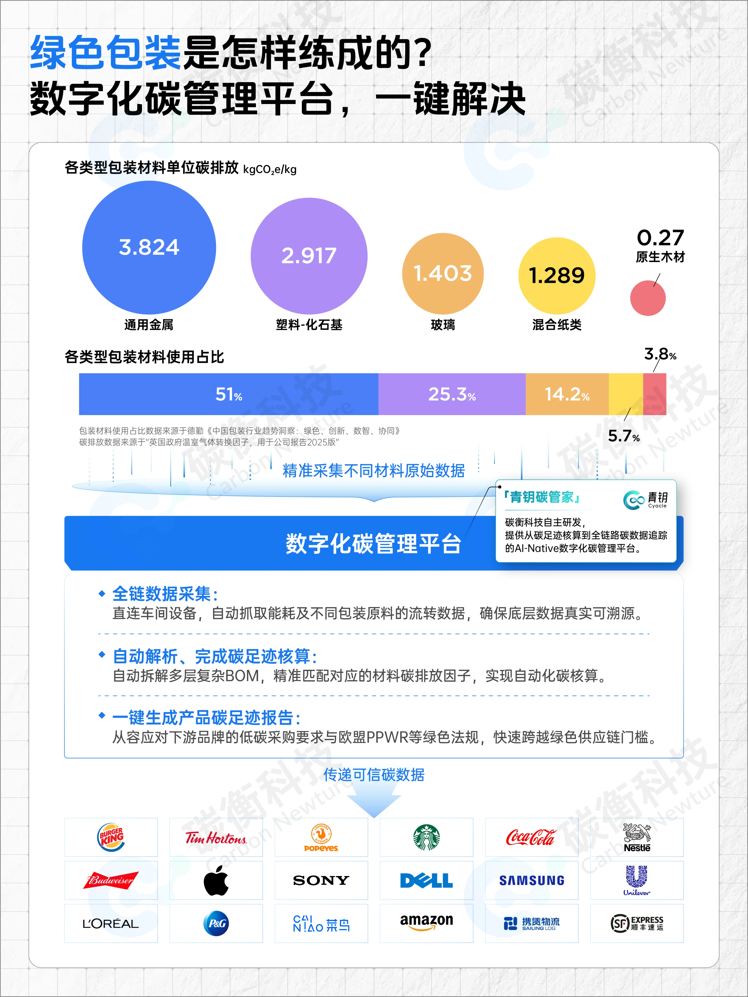 不同类型包装材料的碳排放差异悬殊,面对庞杂的物料清单与多节点流转,人工核算不仅费时费力,更无法通过下游品牌的绿色采购准入要求。