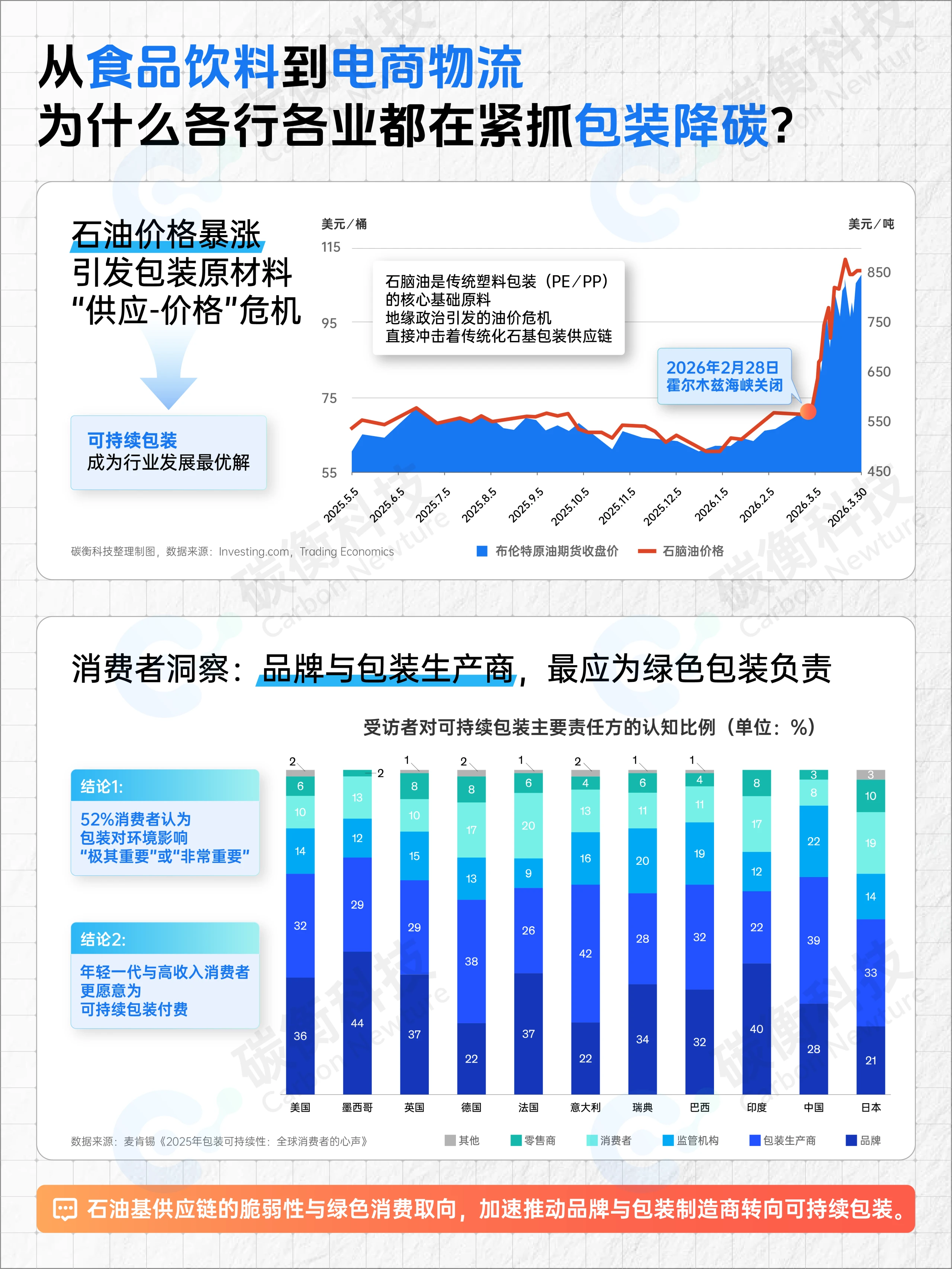 霍尔木兹海峡封锁引发原油价格暴涨,导致传统塑料包装核心原料——石脑油价格同步飙升,石油基供应链的脆弱性暴露无遗。