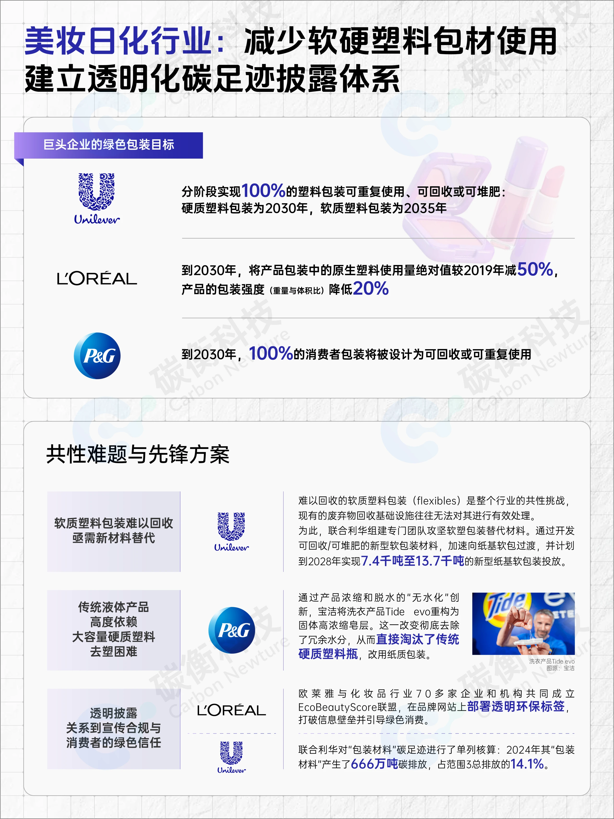 宝洁通过“无水化”创新,将洗衣产品重构为固体皂层,彻底淘汰传统硬质塑料瓶。