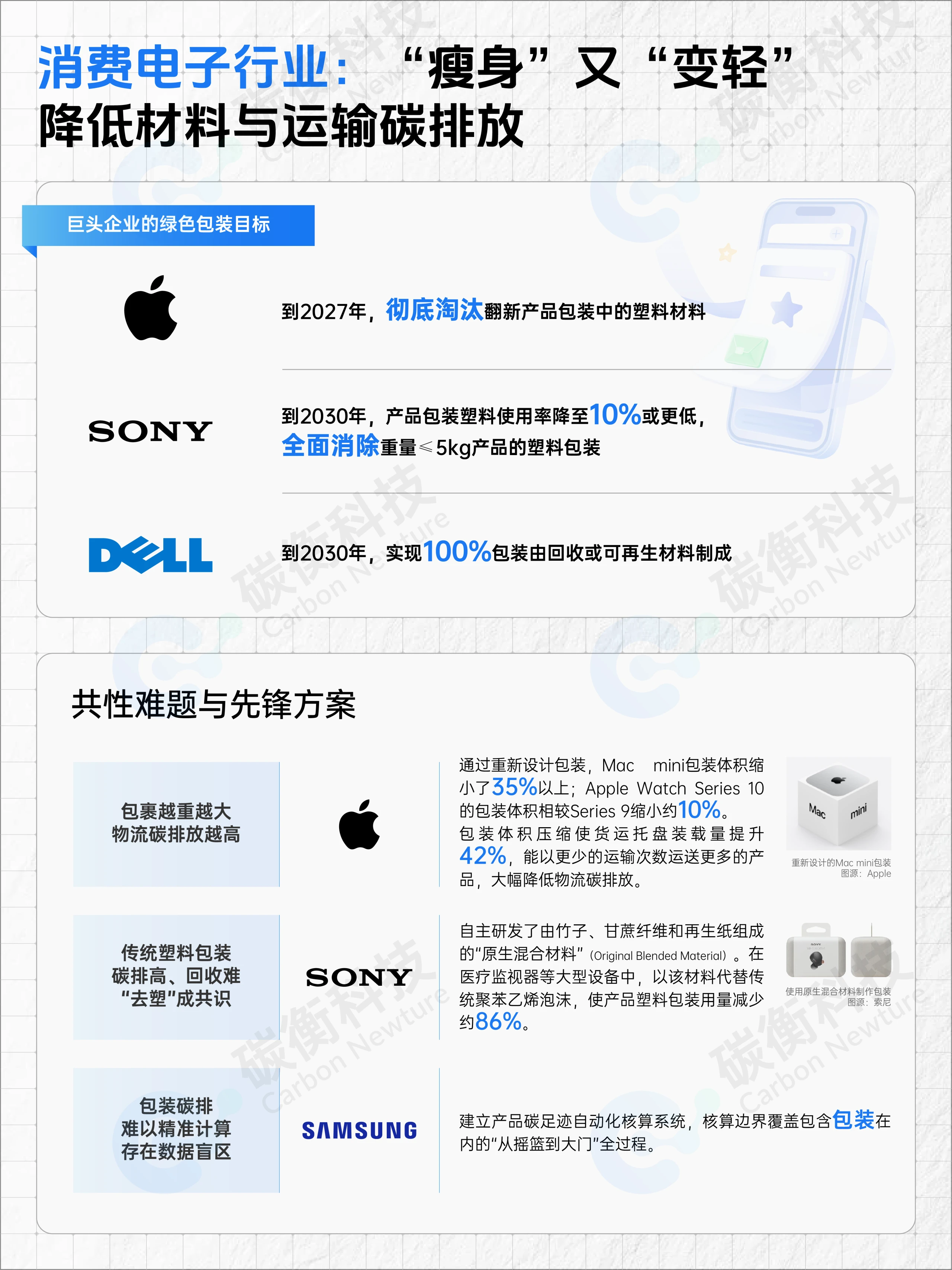 苹果通过重新设计缩小产品包装体积,提升装载效率,大幅降低物流碳排放;