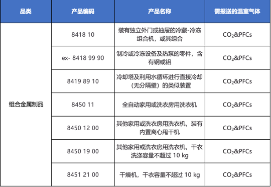 CBAM扩围提案清单中明确涉及家电产品(部分)(内容为机翻,供参考)