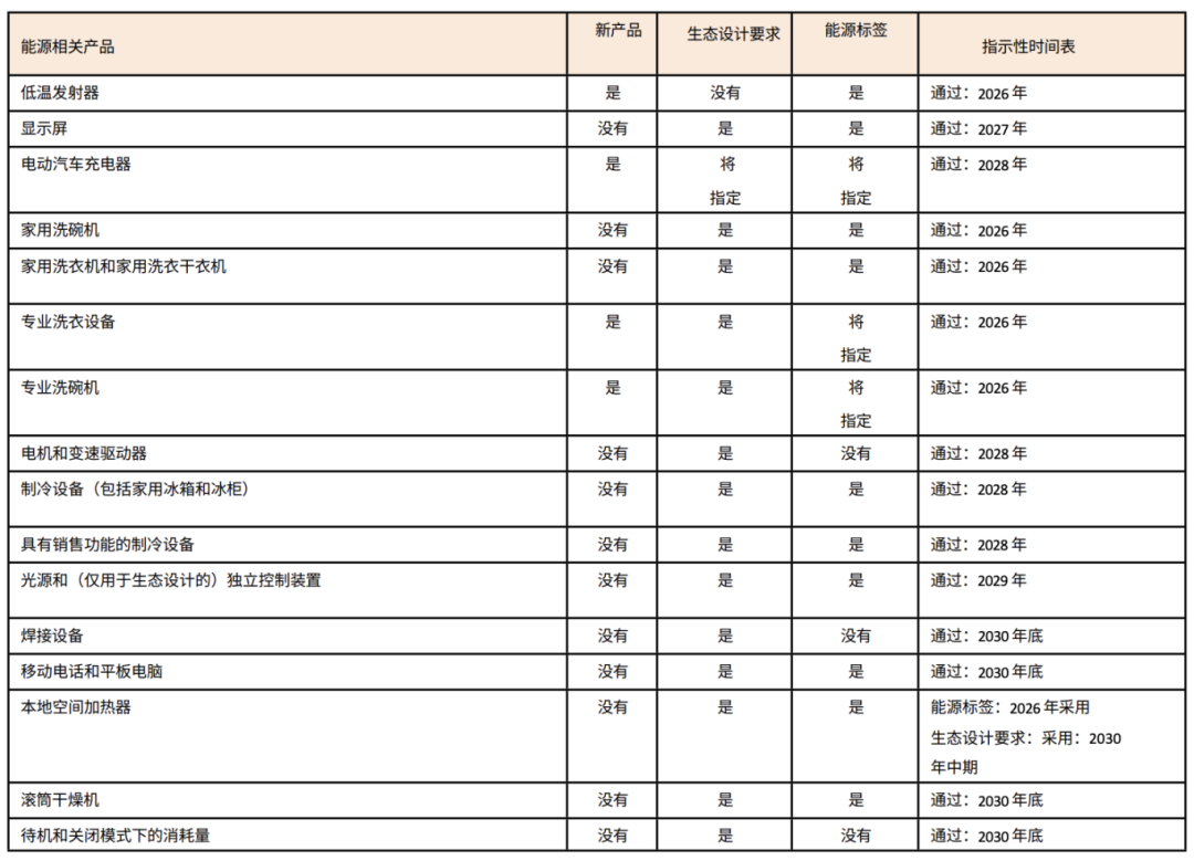 在ESPR的2025-2030年工作计划中,家用洗碗机、家用洗衣机及干衣机预计将于2026年被纳入ESPR框架,制冷器具(冰箱、冷柜)预计2028年纳入,手机、平板电脑、显示器等3C产品已被列为首批优先处理的产品组。因此,相关企业也需及时从设计源头进行产品全生命周期绿色转型。
