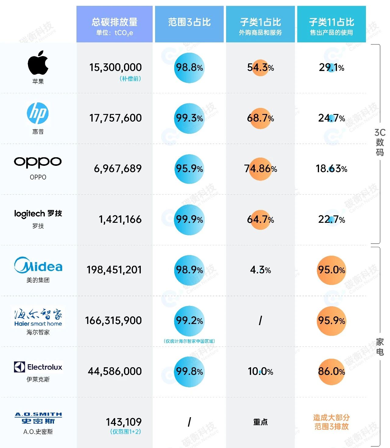 差异成因 | 3C数码行业:供应链制造阶段(子类1外购商品和服务) | 家电行业:使用阶段(子类11售出产品的使用) |